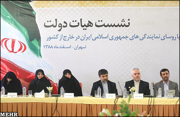 در نشست هیئت دولت با روسای نمایندگی های ایران در خارج از کشور،هاله ای از رنگ سیاه بر قسمت سبز رنگ پرچم ایران قرار گرفه بود.