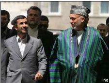 کرزی و احمدی نژاد درباره گسترش همکاریهای دوجانبه گفتگو می کنند |