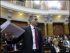 قطعنامه پارلمان صربستان بعد از ۱۳ ساعت بحث و گفتگو و تنها با ۱۲۷ رای نمایندگان مجلس ۲۵۰ نفره این کشور تصویب شد. هنگام رای گیری ۱۷۳ نماینده در پارلمان حضور داشتند و بسیاری از نمایندگان ملی گرا از رای دادن خودداری کردند.