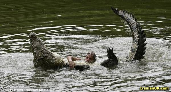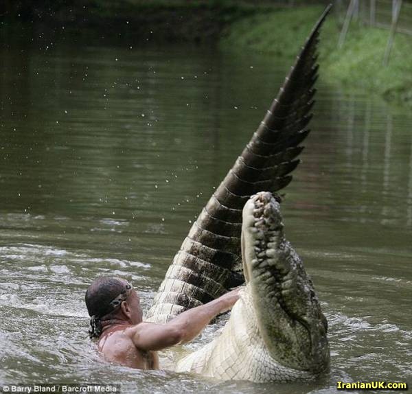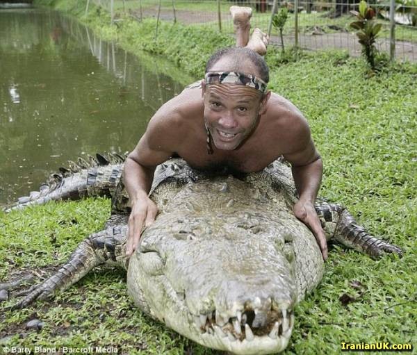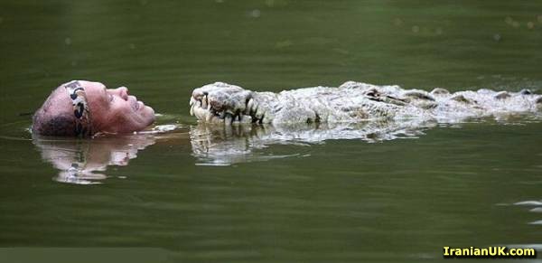 بیچاره این کروکودایله که مجبوره با این دیوونه بازی کنه و بهش سواری بده.بالاخره این مردک یه روز بلا سر این حیون زبون بسته میاره |