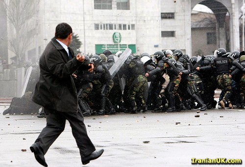 اینطوری باید انقلاب کرد، با روش مسالمت آمیز نمیشه، جواب خشونت با خشونت باید داد |