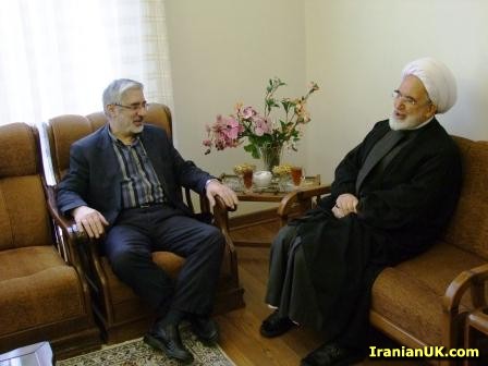 صبح روز مورخ 6اردیبهشت 1389 میرحسین موسوی به دیدار مهدی کروبی رفت. در این دیدار که یکساعت به طول انجامید مسائلی همچون سیاست داخلی و خارجی کشور، وضعیت زندانیان سیاسی و حوادث و رخدادهای اخیر مملکتی مورد گفت و شنود قرار گرفت.