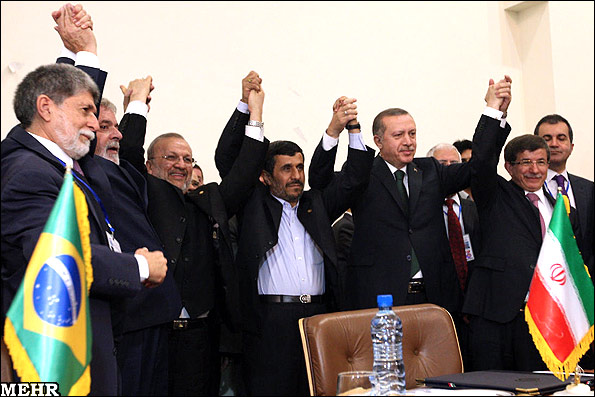جمهوری اسلامی سرانجام در برابر تهدید به تحریم تسلیم شد و اعلام کرد ۱۲۰۰ کیلو موجودی اورانیوم ۳ و نیم در صد غنی شده خود را با ۱۲۰ کیلوگرم اورانیوم غنی شده در کشور ترکیه مبادله خواهد کرد.