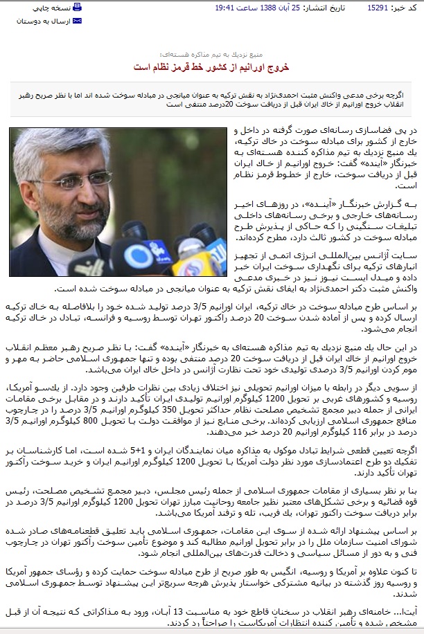 سایت تابناک متعلق به محسن رضائی مفاد توافقنامه امضاء شده بین جمهوری اسلامی ،ترکیه و برزیل را به این شرح گزارش کرده است :