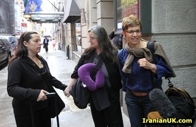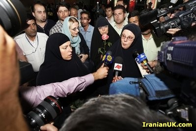 مادر سارا شرود ( چپ ) و مادر جاشوا فتال (وسط ) به همراه سفیر سوئیس , حافظ منافع ایالات متحده در ایران (راست)