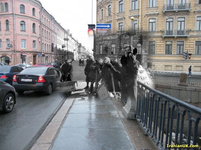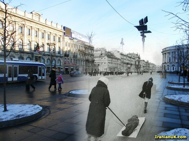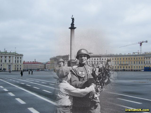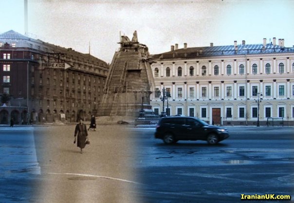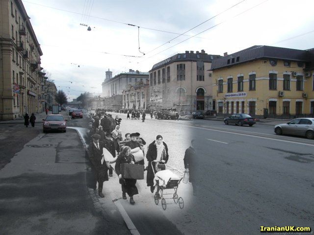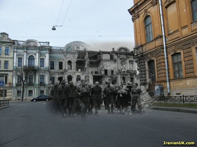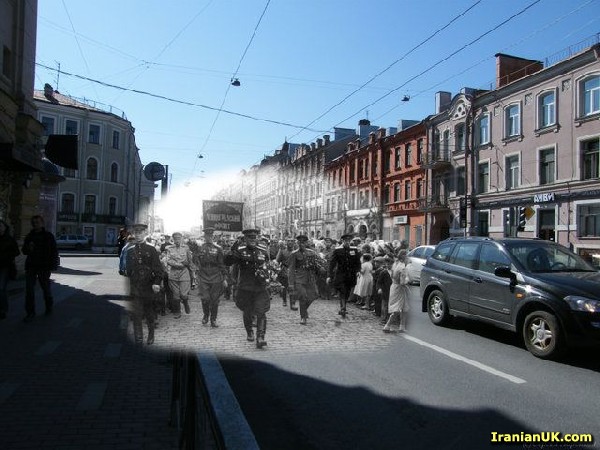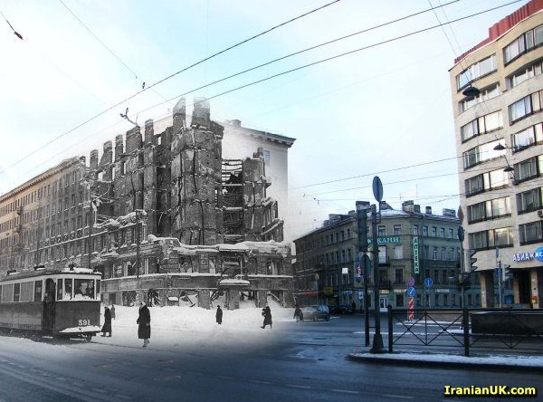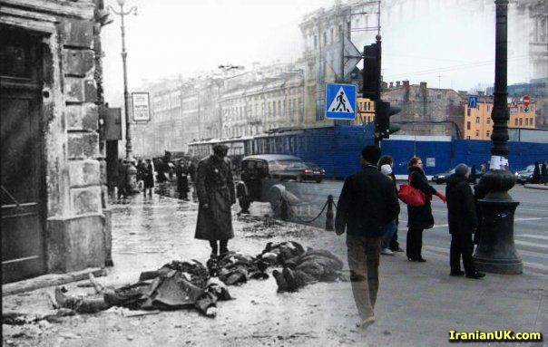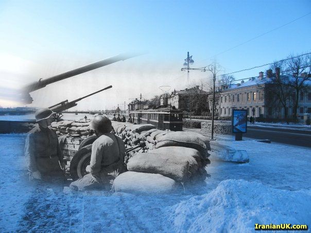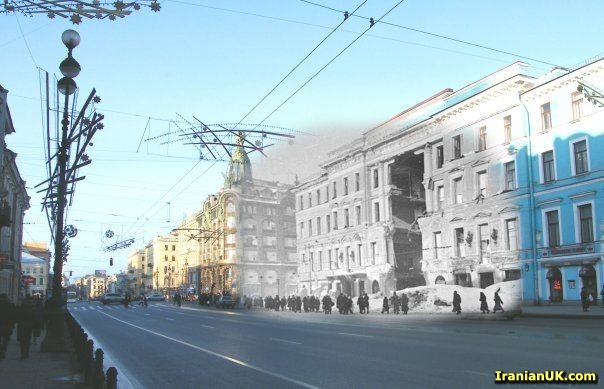 شهر لنینگراد در زمان جنگ جهانی دوم از 8 سپتامبر 1941 الی 27 ژانویه 1944 بیش از سه سال در محاصره نیروهای آلمانی قرار داشت به طوری که جریان عادی زندگی در طول این مدت در این شهر بزرگ و تاریخی بطور کل قطع شده بود، آنچه را که مشاهده می کنید ابتکار گرافیکی از "دیروز" و "امروز" شهر لنینگراد ( سن پترزبورگ فعلی) است که سعی شده است تصاویر مشهور و نماهای معروف جنگ جهانی دوم با استفاده از لوکشین های ثابت در طول زمان و عکسهای جدید بازآفرینی شود.