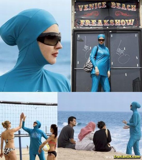 اه اه اه، چقدر مسخره، بیخیال بابا، برید گونی بر تن کنید ، بورکینی دیگه کیلو چنده!!! |
