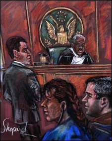 مادلین موریس خبرنگار بی بی سی در بیرون دادگاه در نیویورک می گوید این اولین بار بود که این ده مرد و زن از زمان بازداشت با هم در دادگاه حاضر می شدند.