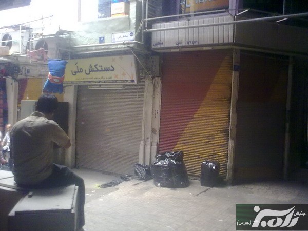 یک شاهد عینی امروز از بازار تهران می گوید "بازار طلافروشها مثل روزهای تا سوعا و عاشورا بسته است و تمام مغازه ها با کر کره های پایین به اعتصاب پیوسته اند