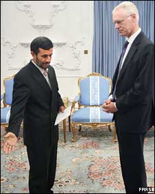سایمون گس شهریور سال گذشته استوارنامه خود را به محمود احمدی نژاد، رئیس جمهوری ایران تحویل داد |