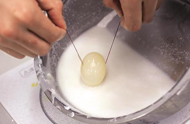 کاملا شبیه تخم مرغ واقعی به نظر رسیده و هنگام پخت و پز نیز ظاهری زیباتر دارند. برای درست کردن پوسته تخم مرغ از کربنات کلسیم استفاده کرده و برای زرده و سفیده نیز از مواد شیمیایی مانند سدیم ژلاتین،کلسیم کلراید، زاج سفید و مواد رنگی استفاده می کنند.