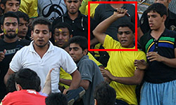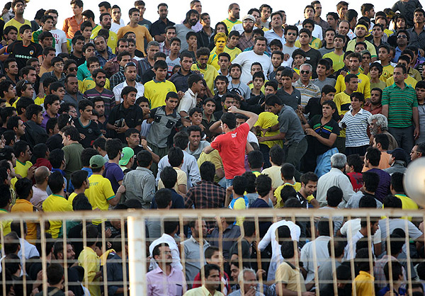 خاک بر سرها چند نفر به یک نفر!!!قیافه های نحسشون چندش آوره. ماشالله ملت همیشه در صحنه باز هم که نشستند و تماشا میکنند.. ما ایرانی ها هم فقط بلدیم ادعا کنیم..حتما اینه بنی آدم اعضای یکدیگرند نه؟خاک بر سر مسئولانی که مثلا تماشاگران رو بازرسی کرده اند. |