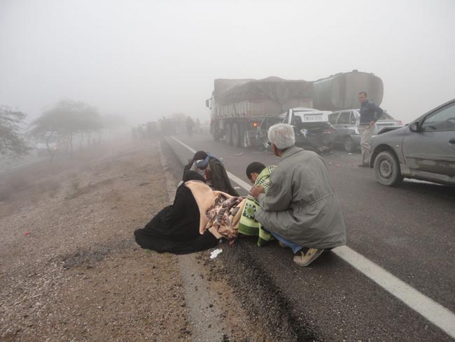 تصادف‌های این چنین فقط نشان دهندهٔ رعایت نکردن فاصله مناسب بین خودرست اونم تو هوای مه‌ آلود