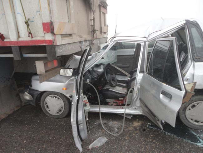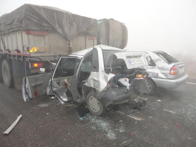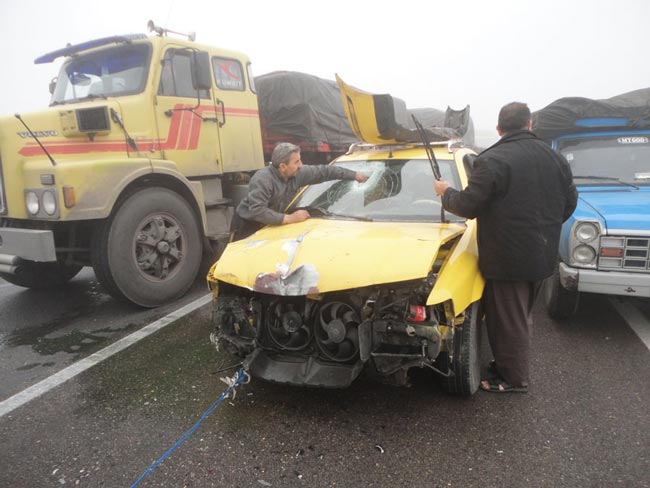 باعث تاسف بسیار است. اگر فاصله با ماشین جلویی را حفظ می کردند و اگر کمربند ایمنی می بستند حالا زنده بودند. عکس چهارم (ماشین زرد). شیشه جلوی ماشین با ضربه سر سرنشین خرد شده. جاده ها و ماشین ها مشکلی ندارند. مشکل از رانندگی خودمان است.