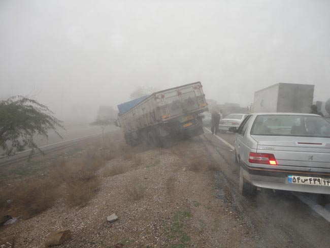 تصادف زنجیره ای دههاخودرو درجاده اهواز