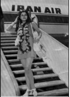 الیزابت تیلور هنرپیشه برجسته در اولین پروازمستقیم ایران ایر مابین ایران و آمریکا. ایستاده در کنار خانم تیلور اردشیر زاهدی سفیر شاهنشاهی ایران در واشنگتن , دو میهماندار ایران ایر در لباس های سنتی ایران و منوچهر گودرزی سرکنسول ایران در نیویورک
