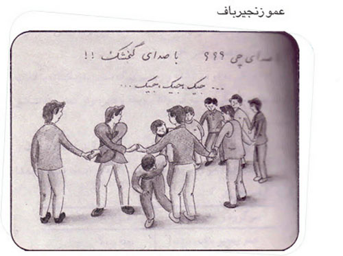pahlavi100 - آمریکا - کالیفورنیا// با درود. اول یه لطفی بکنید هر موقع خواستید با محمود گرز بازی کنید، من و سیدعلی رو هم خبر کنید فقط من چون گرز ندارم، تبر با خودم میارم. مطلب بعدی هم در مورد بازیهای سنتی حوزه؛ اینجوری که من شنیدم اونجا یه بازیهای مخصوص خودش رو داره، مثل: تیلهبازی، نه ببخشید تولهبازی. یا بازیه یه قل دوقل زیرپتو. میگن یه بازی هم دارن که هی میرن اتاق پرو، عباشون رو پرو میکنند! |
