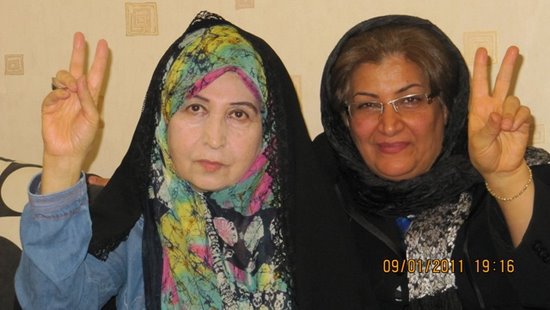 زهرا رهنورد و مادر ندا آقا سلطان با علامت پیروزی(V)