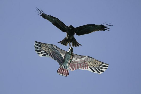 حمله یک شاهین واقعی به یک شاهین دست ساز در جریان فستیوال بین المللی کایت در احمد آباد هند