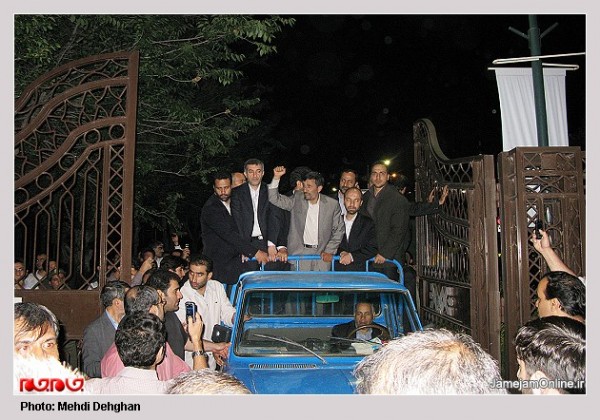 محمود احمدی نژاد آنقدر از پیروزی خود در مناظره با میرحسین موسوی مطمئن بود که به شکل بی سابقه ای روی وانت و در کنار اسفندیار رحیم مشائی در میان خیل هوادارانش از درب جام جم خارج شد؛ حضور ویژه ای که در هیچ کدام از مناظره های دیگر تکرار نشد.