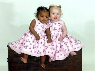 من عکسی دارم "..دقیقا"..شبیه این 2قلوها!..اما اونا 2قلو نیستند.بلکه دوست. هستند..البته در عکس لباس هاشون هم بهم شبیه نیستند..اما جالب اینکه:. خوشگله سیاهه عجیب به* تن ناز* در عکسی که دارم شباهت داره..