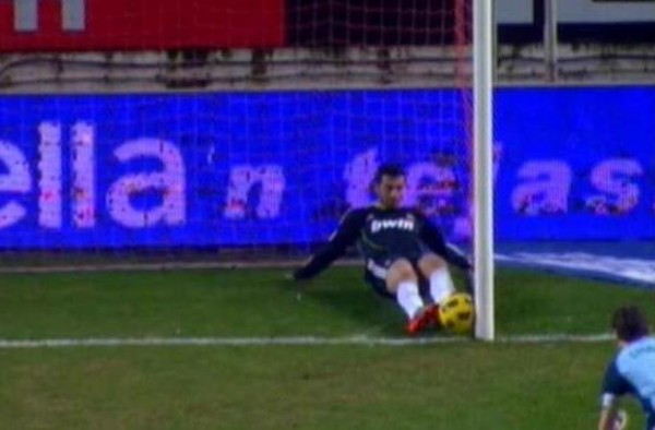 در نیمه اول بازی ضربه لوییس فابیانو به سمت دروازه رئال مادرید در حرکت بود که این ضربه را رائول آلبیول برگرداند، اما تصاویر آهسته نشان میداد توپ از خط دروازه رد شده است.