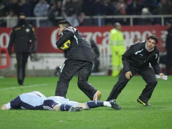اما این همه ماجرا نبود، پس از پایان دیدار، یک بطری از میان تماشاگران سویا به ایکر کاسیاس برخورد کرد و او را نقش بر زمین ساخت.