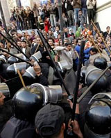 خبرگزاریهای بینالمللی میگویند پلیس با شلیک گلوله پلاستیکی و با ماشینهای آب پاش دست به پراکنده کردن تظاهرکنندگان زده است.