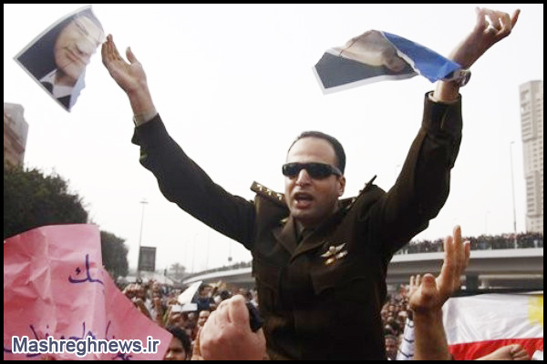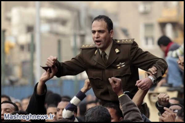 انتشار عکس ها و فیلم های مربوط به در آغوش کشیده شدن ارتشیانی که مامور سرکوب اعتراضات شده بودند توسط مردم ، این پیام را برای همه جهان در بر داشت که رژیم مبارک در میان ارتش هم پایگاه قابل توجهی ندارد. اما به جرات می توان گفت باز هم اصلی ترین ضربه معنوی به پیوند میان ارتش و مبارک ، از طرف یک سروان جوان مصری وارد شد. این افسر ، در حالی که یونیفرم رسمی ارتش را بر تن داشت و به خاطر همراهی با مردم ، از سوی آنان مورد استقبال قرار گرفته و روی دوش تظاهر کنندگان قرار داشت ، با انجام حرکتی شجاعانه ، شوری فراوان در میان انقلابیون ایجاد کرد و ضربه ای کاری به اعتماد بنفس نظامیان وفادار به رژیم مبارک وارد ساخت. وی در مقابل چشمان هزاران نفر ، تصویری از مبارک را با حالتی معنادار پاره کرد و به اطراف پراکنده ساخت.