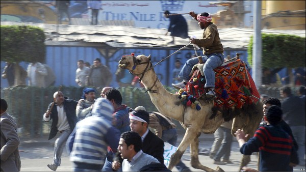 بعضی دیگر از هواداران آقای مبارک سوار بر شتر هستند