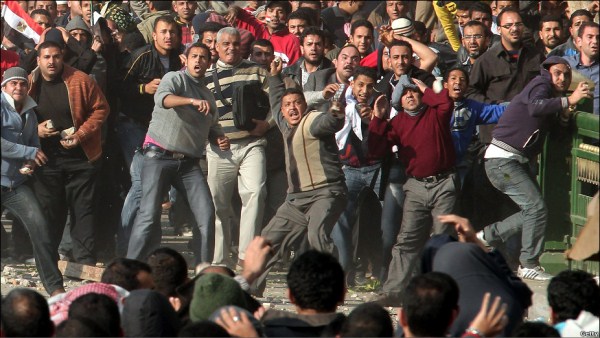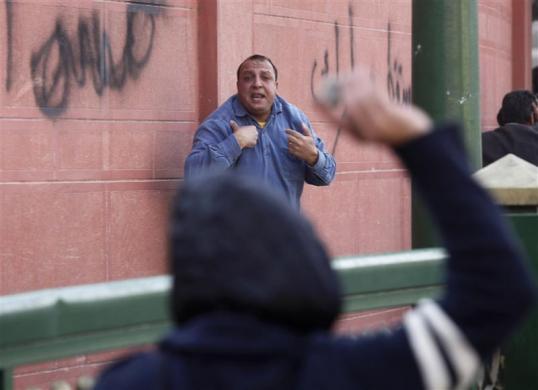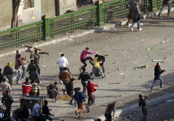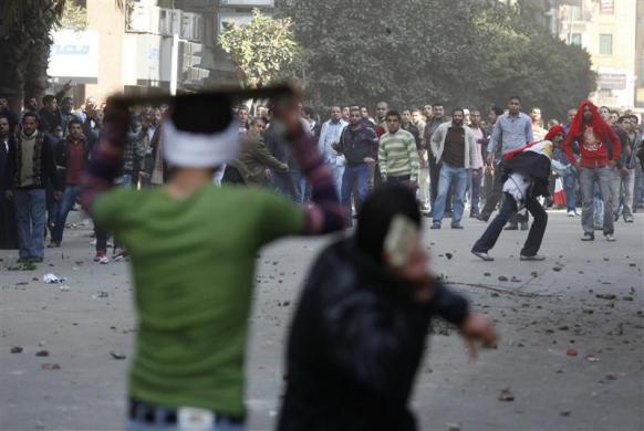 هواداران حسنی مبارک و مخالفان او به سوی هم سنگ پرتاب می‌کنند
