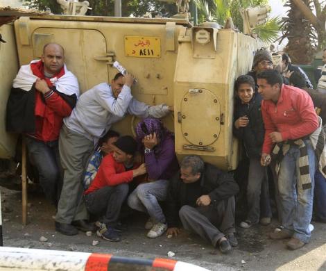 گروهی از هواداران آقای مبارک که به ارتش تحویل داده شده بودند از محل دور می‌شوند