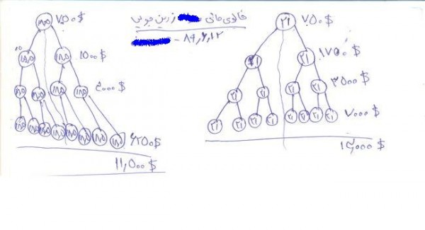 این کاغذ نوشته را من چند سال قبل دیده بودم و مربوط به دستگیریهای اخیر نیست. من به شدت مخالف کار این شرکتها هستم. حدود 7 سال قبل یکی از بهترین دوستانم گولدکوئست را به من معرفی کرد. اصرار میکرد عضو شوم. میگفت مقرش در کره جنوبی (یا شاید سنگاپور , درست یادم نیست) هست. در ازای پرداخت 400 دلار ادم یک مدال طلا میخرد (که بعد فهمیدم ارزش واقعیش حدود 90 دلار بود). اگر ادم دو نفر را قانع کند که انها هم بخرند, حدود 100 دلار میگیرد و اگر هر کدام از انها دو نفر را قانع کنند, هم خودشان 100 دلار میگیرند و هم من. خلاصه اگر ادم سرشاخه بود و خریداران دائم بیشتر میشدند, همینطور ادم پول گیرش می امد. کل ماجرا برایم جای سوال داشت. من باید افراد را قانع میکردم که 400 دلار برای یک کالای 90 دلاری بدهند و تا من پولدار شوم و انها هم بقیه را قانع کنند تا هم خودشان و هم من پولدار شویم. این کار به شدت با اصول اخلاقی من منافات داشت. به نظر من این یک جور کلاهبرداری بود. |