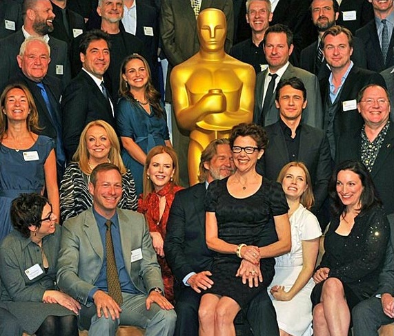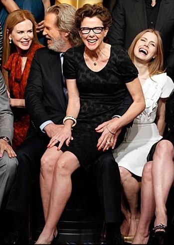 جمعی از نامزدهای اسکار در رشته های مختلف. در جلوی تصویر آنت بنینگ روی پای جف بریجز نشسته است.