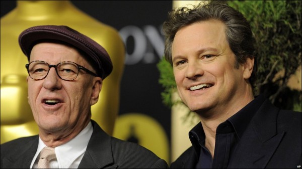 کالین فرث و جفری راش، بازیگران فیلم سخنرانی پادشاه که هر دو نامزد اسکار شده اند.