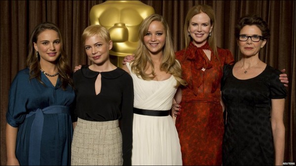 نامزدهای دریافت اسکار بهترین بازیگر زن نقش اصلی. از راست: آنت بنینگ، نیکول کیدمن، جنیفر لارنس، میشل ویلیامز و ناتالی پورتمن