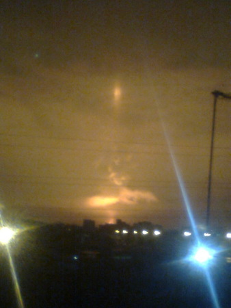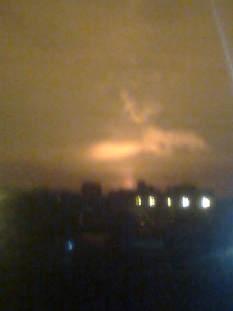 دقیقا اون لحظه من داخل اتوبوس بودم و از شیراز داشتم می اومدم. شدت انفجار بحدی بزرگ بود که نور حاصل از اون قسمت بزرگی از آسمون رو روشن کرده بود طوری که اول همه مسافرها تصور میکردن آفتاب طلوع کرده یا یه جور شفق صبح گاهیه. من خودم هم تصور می کردم توی مراکز اتمی شون انفجار رخ داده. |