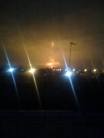 برخی شاهدان عینی می گویند علاوه بر لرزیدن شیشه های ساختمان ها و قرمز رنگ شدن آسمان، ذرات معلق زیادی نیز در هوا قابل مشاهده بوده و ستون دود تا چند کیلومتر از سمت غرب به آسمان رفته و باعث وحشت مردم شده است.
