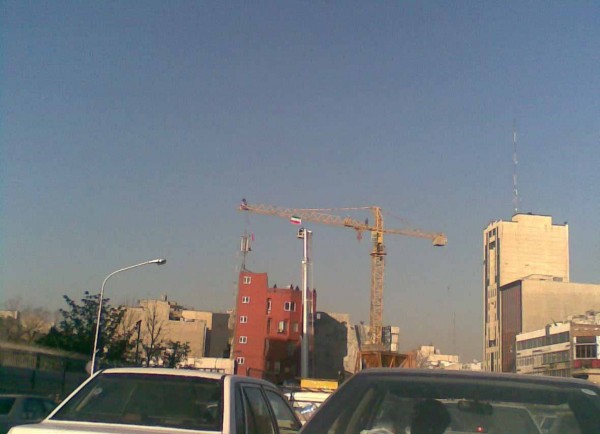 بالا رفتن یک دختر از جرثقیلی واقع در چهار راه قصر تهران
