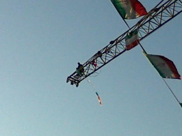 بالا رفتن یک دختر از جرثقیلی واقع در چهار راه قصر تهران در حمایت از جنبش سبز