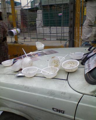 YAS ABI - بلژ - برل. شما که دم از فرهنگ میزنی حتماً به ظروف یکبارمصرف کوفت شده و تراکتها و عکسهای مجلل تمام رنگی پاره پاره شده با آرم مقدس الله زیر دست و پا در سطح خیابانها و روی ماشینها دقت کردی! آیا این همان فرهنگ و الگویی است که از آن دم میزنی؟ خیرات را هم فقط در ایام مذهبی میدهند نه ایام سیاسی! آقای بافرهنگ! |