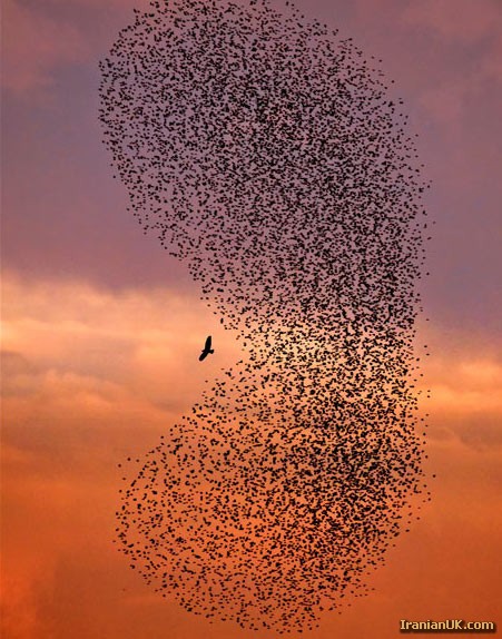 عکس 17 ...آیا کسی میدونه این چیه؟؟ رقص کلاغها؟..اعتراض کلاغها؟/..آغاز به. اقدام خود کشی؟؟/.."* من اینو اینجا چند سال پیش در ماه مارس دیدم اما. نمیدونم چرا کلاغها آنرا انجام میدهند؟؟/. بسیار زیباست با چرخش ها.بالا و. پایین رفتنها. مانورها. بسیار زیباست ..دقیقه ها ناظر رقص پرنده ها بودن..