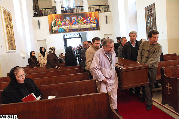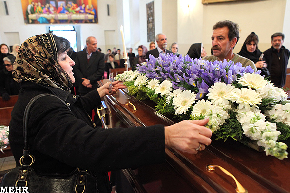 مراسم تشییع پیکر آلینوش طریان مادر ستاره شناسی ایران ظهر امروز دوشنبه در کلیسای مریم مقدس برگزار شد.