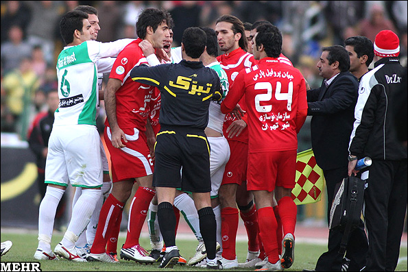 با مشاهده تصاویر بالا ابتدا به این نکته دست می یابیم که در درگیری هایی که در بازی های فوتبال در ایران به وجود می آید همه دخالت دارند. از بازیکنان و مربیان و داوران گرفته تا ناظر بازی!