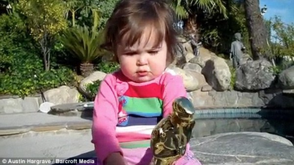«سیمون ایگان» که چند روز پیش برنده جایزه اسکار بهترین تهیه‌کننده سال شده بود، روز گذشته در حالیکه سعی می‌کرد تا از دختر 15 ماهه‌اش در حال در دست داشتن تندیس اسکار عکس بگیرد، برای لحظه‌ای غفلت کرد و باعث این اتفاق شد.