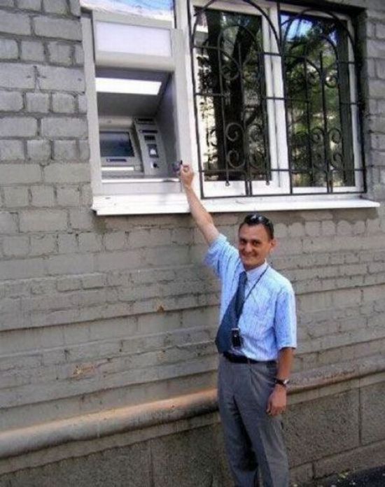 عقل که نباشد جون در عذابه. این هم کار آدمهای غیر متخصص است که عابر بانک را فقط کار گذاشتن توی دیوار بدون توجه به ارتفاع آن . |