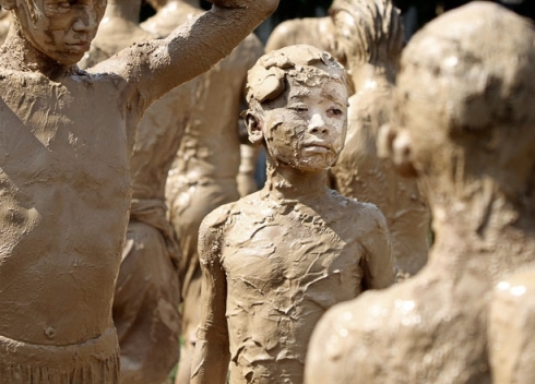 گل مالی پسر بچه های اندونزیایی در مراسم سنتی از بر خوانی قرآن در منطقه ای در حومه جاکارتا