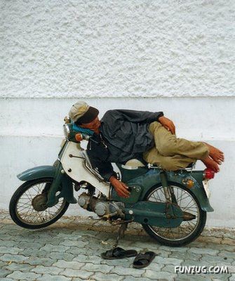 میگم دیگه کسی نبود سوار قطار شه !!! lol. اخی این یارو ه چه راحت و با حال رو موتورش خوابیده . اون 3 چرخه هم باحاله ماشاالله |