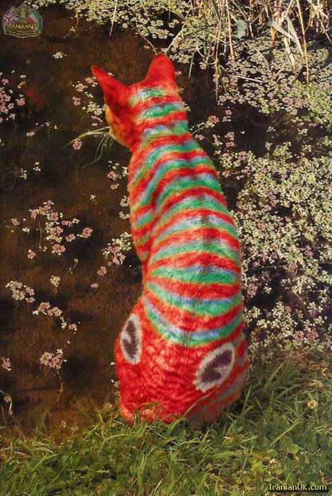یکی نیست بگه این گربه های بیچاره چی کشیدن زیردست نقاش و یا رنگرز که به این شکل در امدن ؟ حیوون زبان بسته. |
