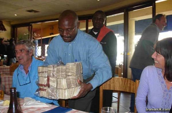 پس پاشیم بریم زیمبابوه به محض رسیدن میلیاردریم. همون اول دم فرودگاه باید یه فرغون بخریم که بتونیم پولامون رو اینور اونور ببریم. واسه خرید رفتن باید وانت بار کرایه کنیم با دوتا کارگر چون واسه خرید و وانتی و کارگرا یه یک تنی اسکناس لازمه :-)) |